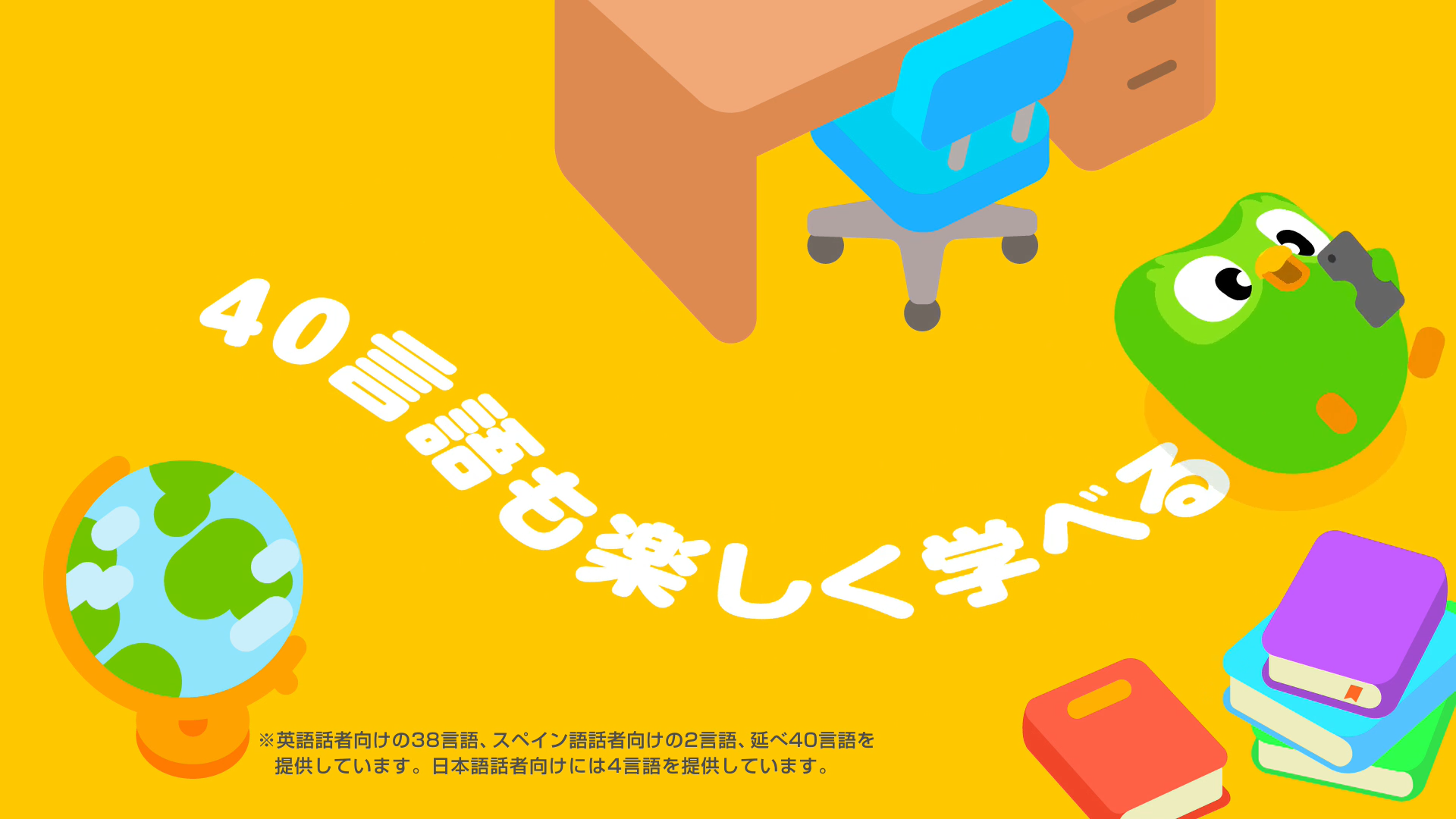 Duolingoは、世界中の誰もが楽しくアクセスできるように設計された無料のオンライン学習プラットフォーム。科学的に証明されたひとくちサイズのレッスンで、英語だけでなく、中国語、スペイン語、フランス語など、42言語、合計100種類以上のコースを提供しています。日本版では英語、中国語、韓国語、フランス語の4か国語を提供しており、今後学習可能な言語数を増やしていく予定です。