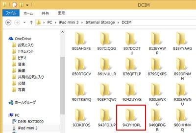 ステップ3、「DCIM」の中には、iPadに保存されている動画や写真が1000単位でフォルダーが生成されています。その中から転送したいものを見つけ出し、パソコンに直接移動することができます。