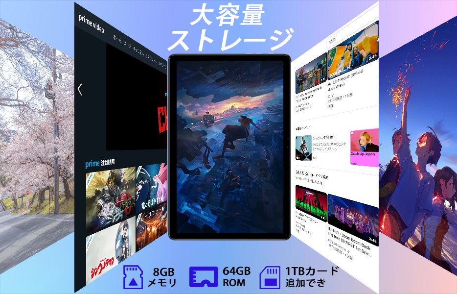 【高性能4コアCPU+8GB(4+4拡張)RAM+64GB ROM】N-one Npad Air Android12 タブレットはUnisocに開発された4コアCPU「CPU T310 」は低消費電力で製造され、PVR GE8300グラフィックスプロセッサを合わせ、低消費電力と低発熱を実現でき、様々な機能が強化されており、より軽快な動作と高速な処理が可能になります。動画の視聴、ウェブプラウジング、音楽鑑賞などに最適です。4GBの大容量メモリ-を搭載。快適な操作でより多くのアプリ、 プレイリスト、写真、動画などが楽しめます。内部ストレ-ジ64GBの容量があり、 さらに、お手持ちのmicroSDカ-ドを挿入すれば1TB容量を拡張可能。 容量不足に困ることなく十分に使用出来ます。