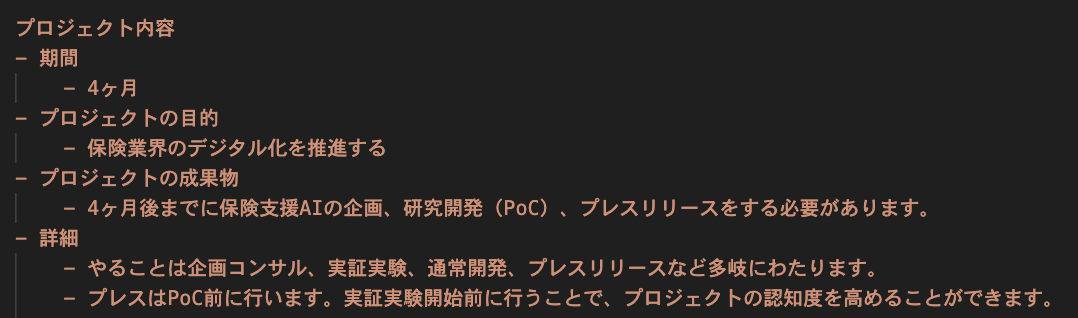 上記ガントチャート生成AI「CalqPM」への入力情報は以下文章と従業員情報のみ