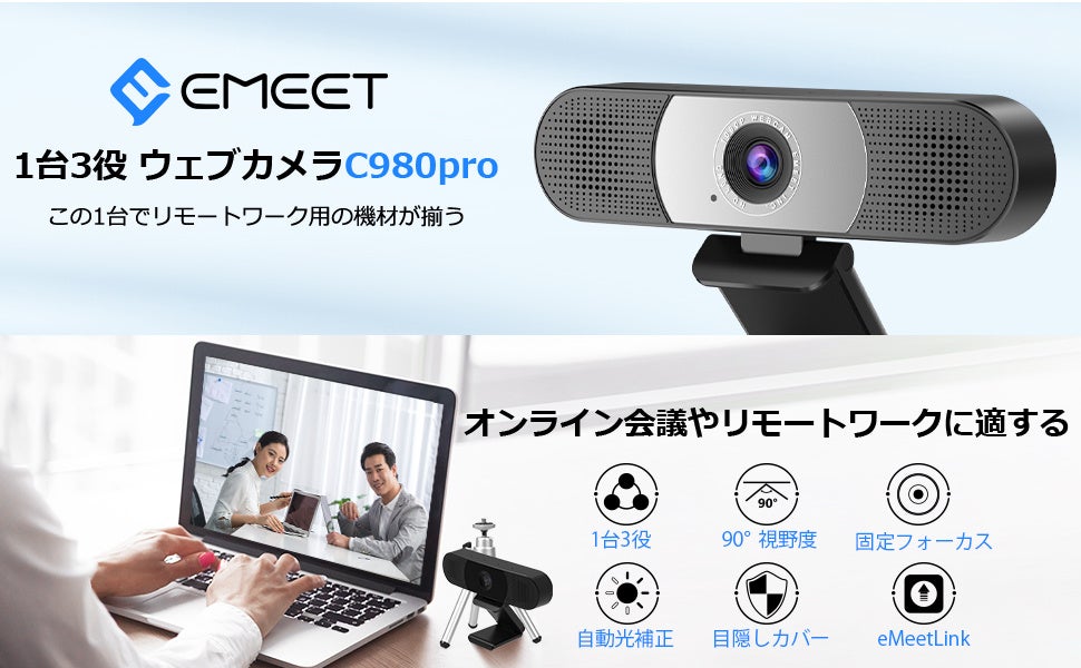 EMEET C980 pro 会議用ウエブカメラ ブラック