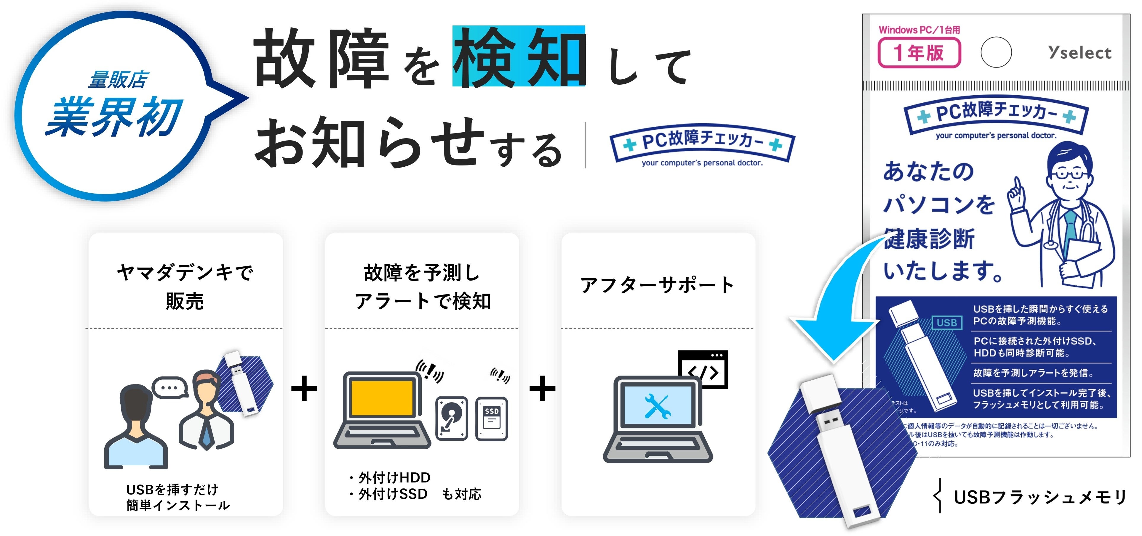 こういったリスクから、ユーザーの大切なデータや機器を救うため、弊社が開発した故障予測技術を提供し、ヤマダデンキと共同開発を行い、記憶媒体の故障予測ツール「PC故障チェッカー」が誕生しました。