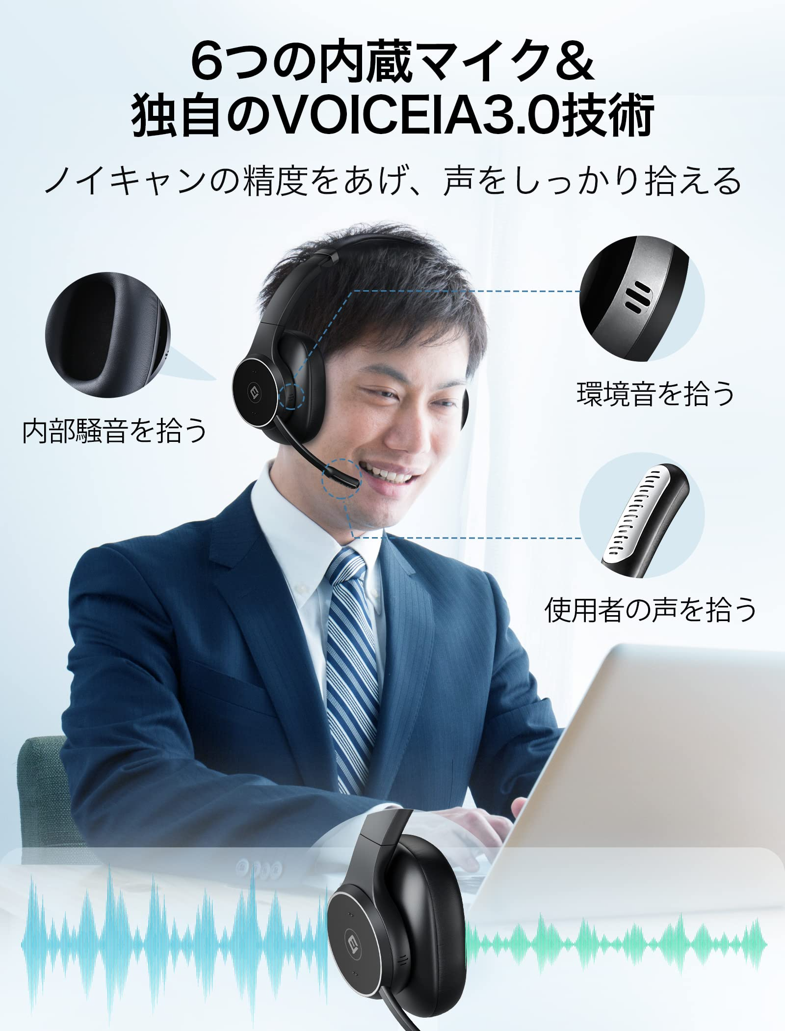 6つのノイズキャンセリングマイクを搭載したEMEETヘッドセット HS150は、独自に開発したVoiceIAオーディオ処理技術により、周囲のノイズを遮断し、あなたの声を正確に拾い、電話相手に明瞭に伝える。コールセンター、リモート会議、オンライン授業に最適。それから、EMEETヘッドセット HS150は、Zoom、Skype、MS Teams、最も人気のあるオンラインビデオ通話アプリに対応できますので、ウェブ会議の良い体験を与えられる。