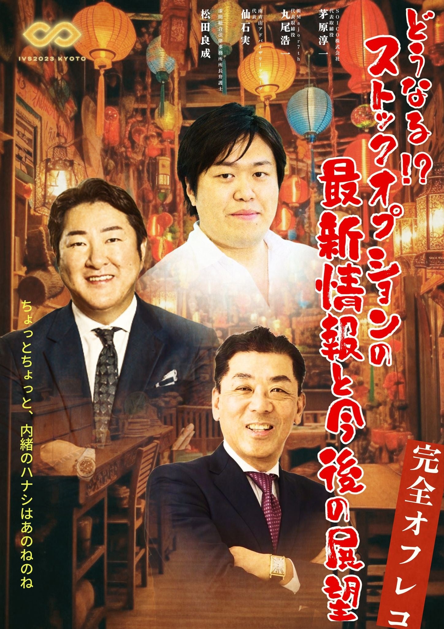 また、今回のIVSの注目のセッションである【完全オフレコ】どうなる!?ストックオプションの最新事情と今後の展望(2023年6月28日15:30から「みやこめっせ」)に代表の仙石実が登壇いたします。