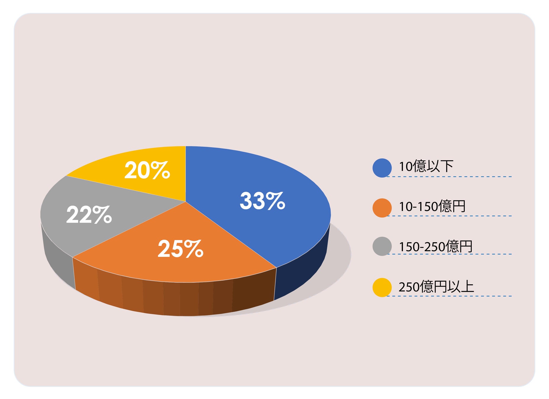 調査回答者:調査は、企業の収益に基づいて企業間で実施されました。