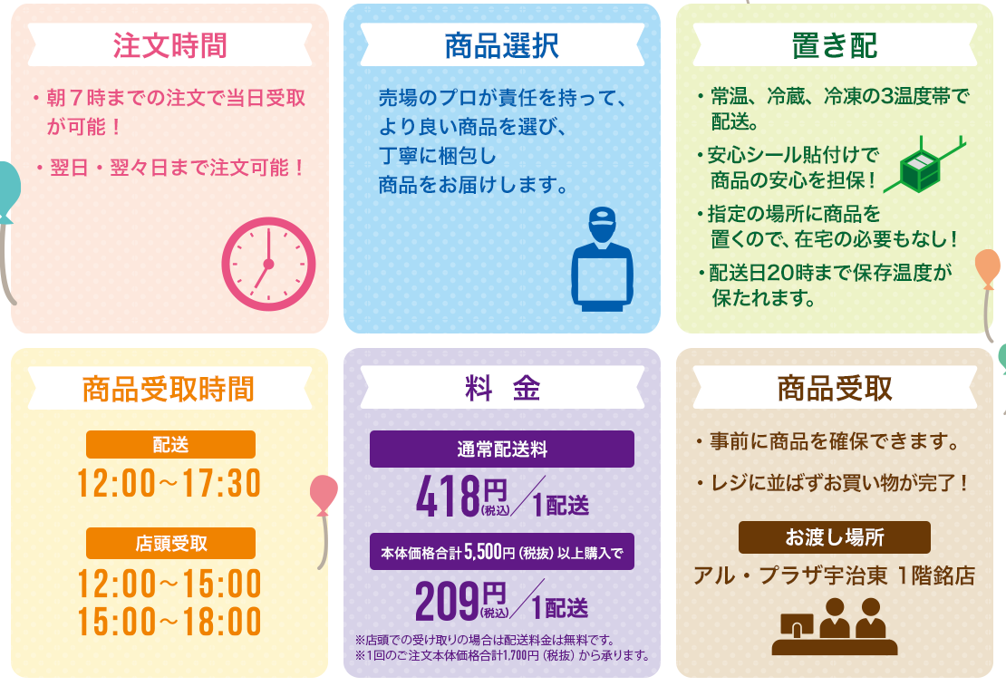 ■ 注文受付:・24 時間受付。翌日、翌々日まで注文が可能です。・朝 7 時までのご注文で、当日受取が可能です。