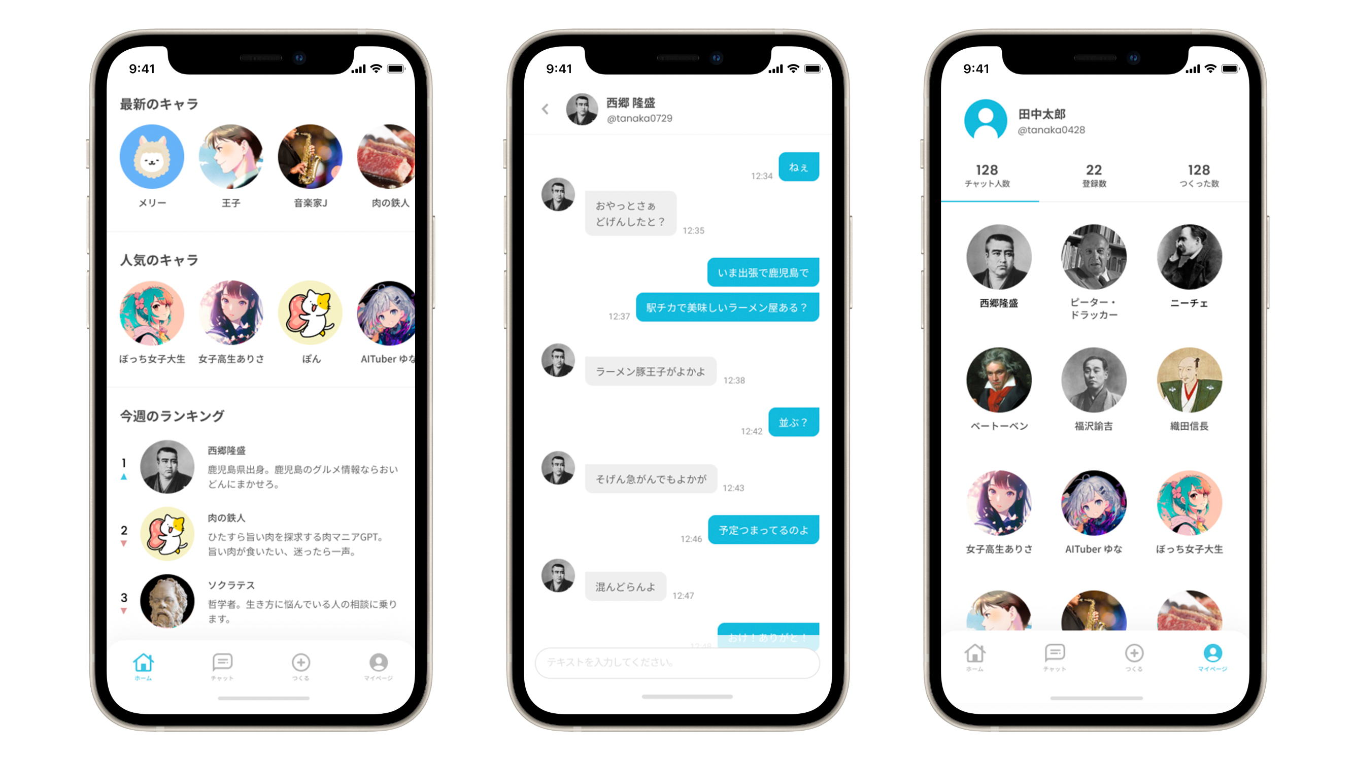 OpenAI が ChatGPT で新たに開拓した対話型のインターフェースを、人格付与(キャラ化)という方法でさらに拡張することで、日本全国ひいては全世界の人々がついつい気になってしまうAIを作ることができるのではと考えています。そして利用者がキャラ化されたAIに『人のこころ』を感じてしまうようなユーザー体験を目指しています。