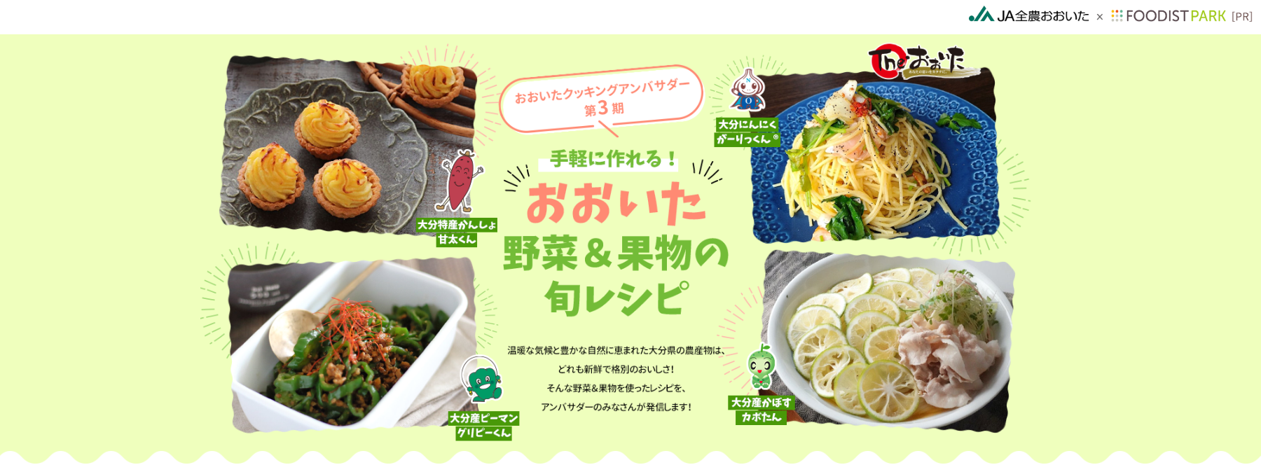 「おおいたクッキングアンバサダー」は、大分県の農産物を応援する大使チームとしてSNSで積極的に発信をして活躍している料理インフルエンサー、料理クリエイターである「フーディスト(※)」から6名を選出しました。温暖な気候と豊かな自然に恵まれた大分県の食材を毎月モニタープレゼントし、食材を使った料理の写真とレシピをInstagramに投稿していただきます。また今回はスペシャルアンバサダーとして、簡単かつ時短でできるをモットーに考案したレシピが人気のフーディスト「おがわひろこ(@hiroogw)」さんも参加。産地見学とともに大分県の魅力も発信していただきます。