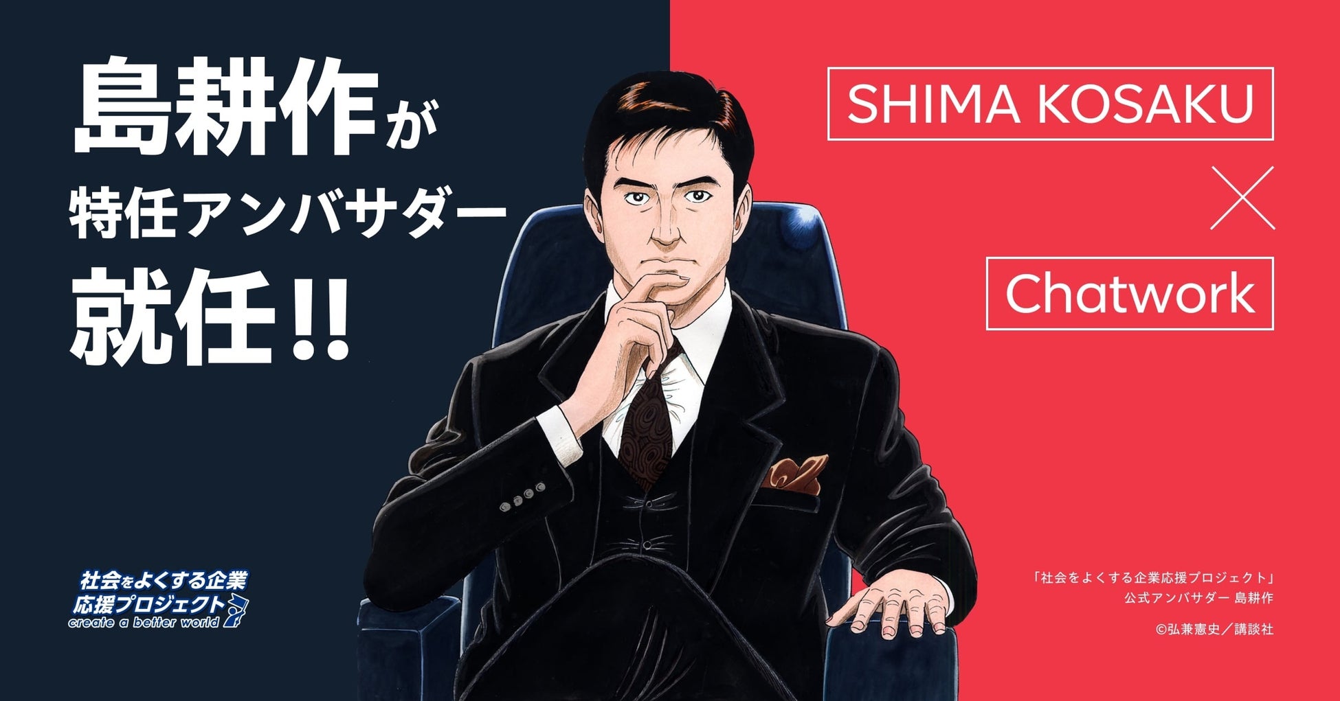 その第一弾IPとして参画した「島耕作シリーズ」に対する、「1社無報酬支援キャンペーン」にChatworkが選出されたことで、このたびの特任アンバサダー就任が実現しました。