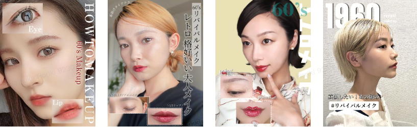 アフターコロナにおいて、マスクで隠れていたリップを中心とするメイクが流行の兆しを見せている。現在SNSで活躍しているメイクアップアーティストを中心に、レトロでビンテージ感のある、60年代風「リバイバルメイク」がトレンドとなっている。「リバイバルメイク」はリップをメイクの重点に置き、色味は上質な深みのあるものを使用し、目元は光で飛ぶようなベージュカラーで艶感を出す。まつ毛はブラックのマスカラでナチュラルに、眉はふんわりとしっかりと仕上げれば完成。どこか懐かしくもあるメイクで、過去の時代にカムバックできる。