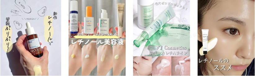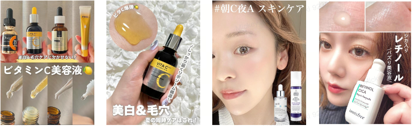 アフターコロナでは、マスクで隠れていた肌悩みが明るみになることから、スキンケアにより効果を求める「攻めの成分」入りの化粧品が人気に。特に、肌のキメを整えると言われているビタミンCやレチノールといった成分配合の化粧品が各メーカーから発売され、Lemon8内でも商品紹介投稿が人気となった。