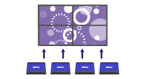 複数のプレーヤーをLANケーブルで接続することで、精度の高い同期再生が可能です。多画面を使用した迫力あるサイネージを簡単に構築できます。