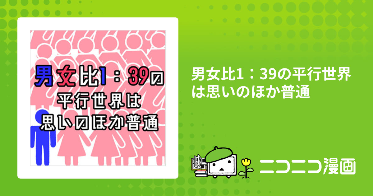 最新話:第100話「2日目」 2023/07/16更新。再生(累計): 36013060。 全話無料。 主人公「佐藤 蒼」はひょんなことから 男女比1:39の平行世界の自分と入れ替わってしまう。 入れ変わった先には、優しい家族や可愛…