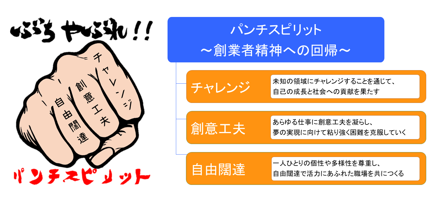 創業者の情熱や執念を今に伝えるべく明文化したパンチグループの企業アイデンティティ「パンチスピリット(創業者精神)」を発揮し、成果として具現化できる人財を、目指すべき人財像として定めています。