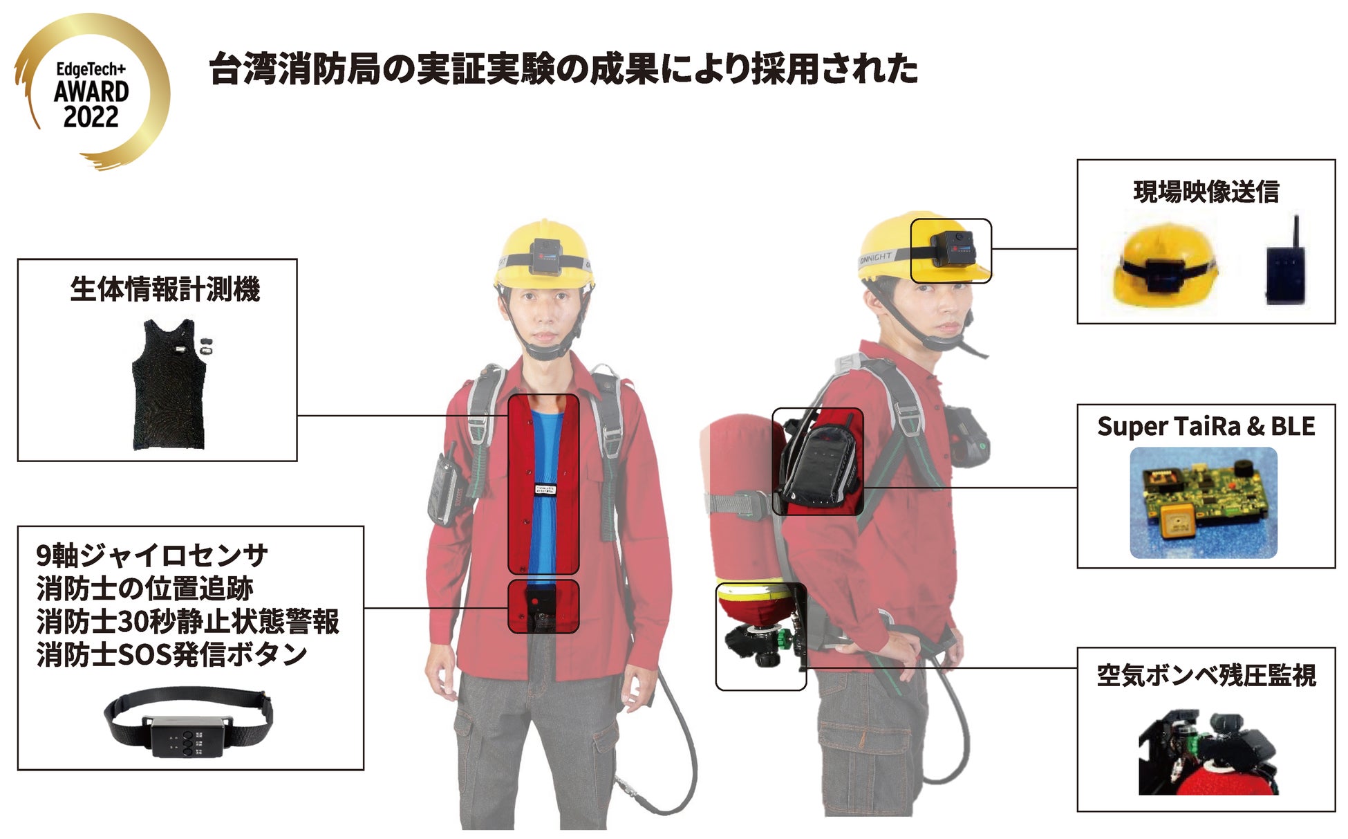 Super TaiRaを活用し、台湾消防局に採用されている消防士の安全管理システムは、2022年に横浜で開催された「EdgeTech+AWARD 2022」の「IoT Technology 優秀賞」を受賞いたしました。