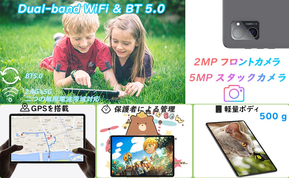 【2.4G/5GWiFi+Bluetooth5.0】2.4G/5G二つの無線電波帯域対応して、そして電波交渉の少ない5G帯のWiFi接続にも対応、安定した通信と高速通信が可能です。Bluetooth5.0搭載で、オフライン地図をタブレットにダウンロードできて、目的地まで精確に導いてくれます。いつでもどこでもバーチャル学習やビデオ通話をするために必要な全てを備えています。