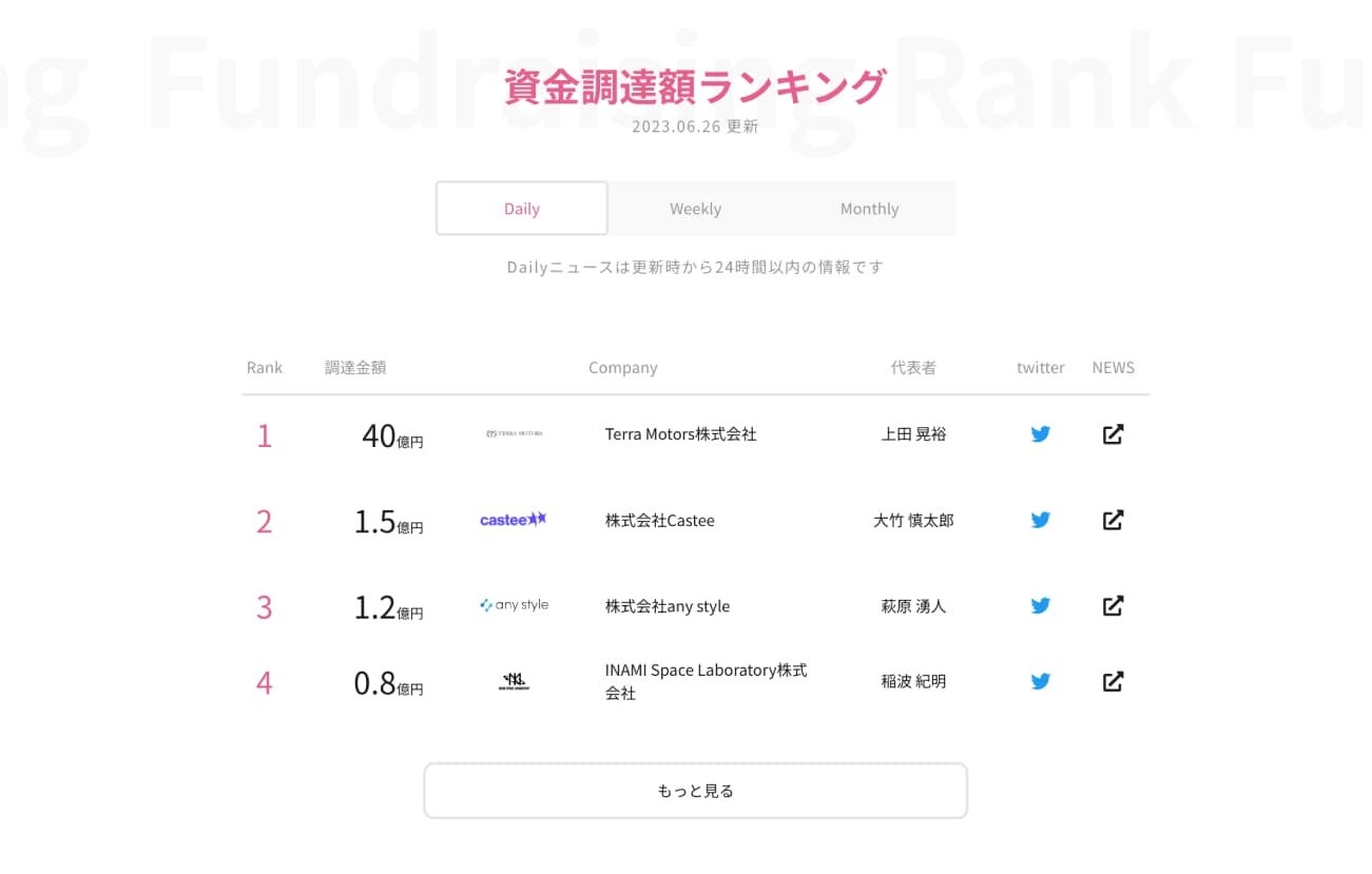 資金調達ニュースと調達ランキングのほぼ毎日更新