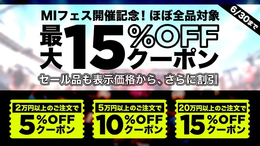 1回のご注文金額に応じて、3つのクーポンコードから対応する1つをご利用いただけます。20万円以上のお買い物なら、なんとさらに15%オフに。ぜひこちらも併せてご利用ください!