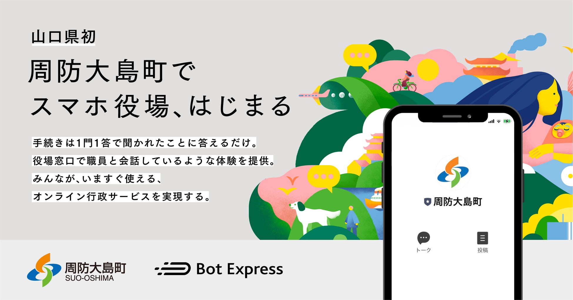 ほとんどの住民が、今、すぐに利用できるスマホ市役所「GovTech Express」を提供する株式会社Bot Express(本社:東京都港区、代表取締役:中嶋 一樹、以下 Bot Express)は、山口県周防大島町(町長:藤本 淨孝)がGovTech Expressを活用し、周防大島町LINE公式アカウントから行政手続きが可能となる「スマホ役場」を7月3日に開設することをお知らせいたします。