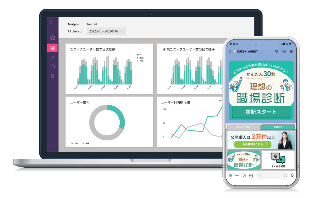 「KUZEN(クウゼン)」は企業のマーケティング効果の最大化や業務効率化、DX化を支援する言語AIプラットフォームです。外部のCRMやMAツール、コミュニケーションツールとの柔軟な連携や充実した運用サポートが特徴で、これまで業種・規模を問わず約400社の企業に導入されております。