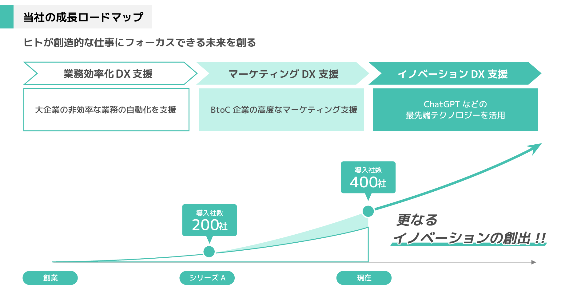AIテクノロジーの進歩によって、ヒトが創造的な仕事にフォーカスできる未来を創るため、更なる事業成長に向けて邁進して参ります。