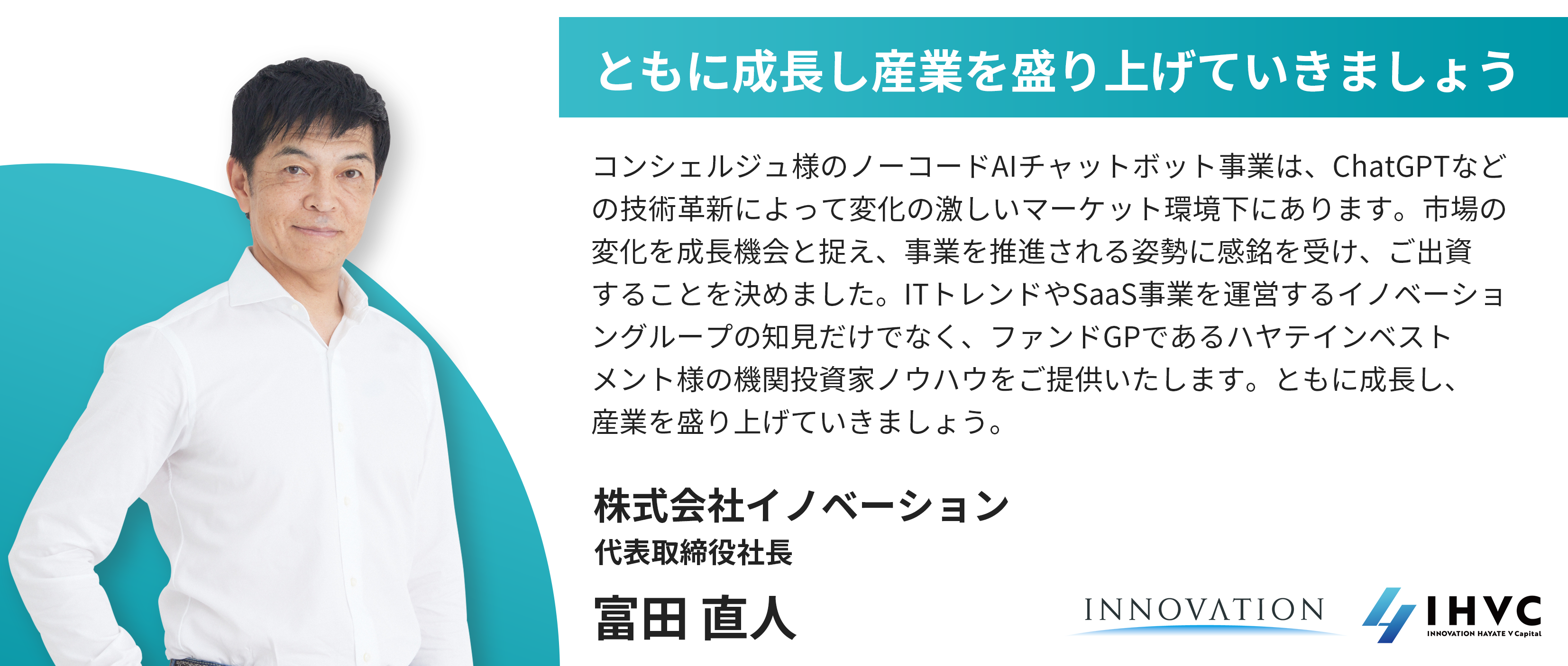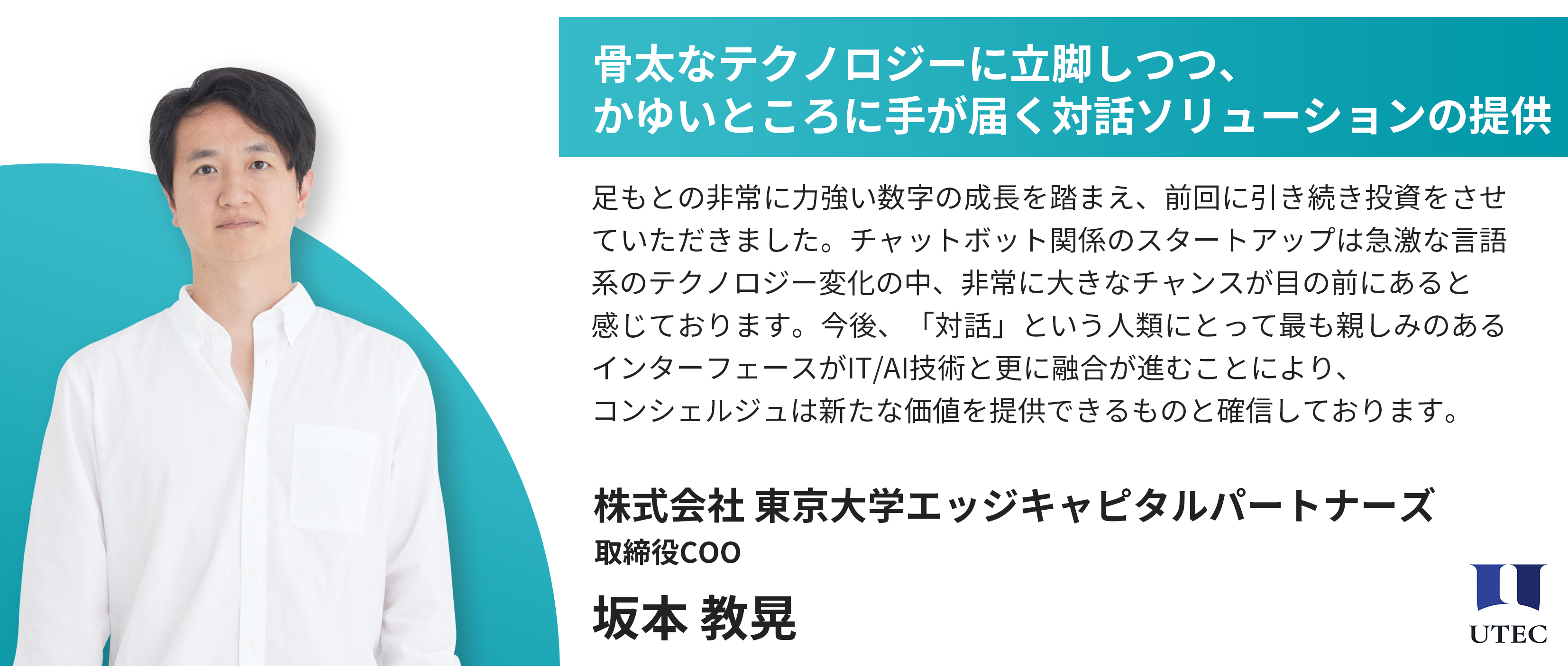※1:【参考】シリーズA資金調達に関するプレスリリース(発表日時:2021年5月12日 09時00分)「ノーコード対話AIプラットフォーム「KUZEN」を提供するコンシェルジュ、UTEC、UB Venturesから総額4.5億円の資金調達を実施」