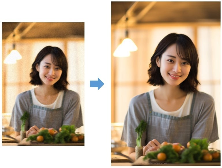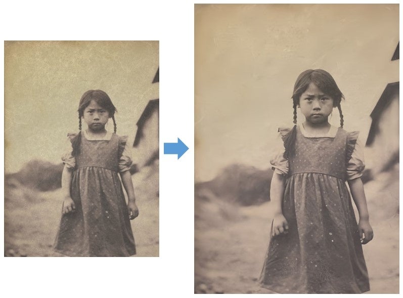 自動で古い写真のシミ、傷を除去、ぼやけを改善、アップスケール