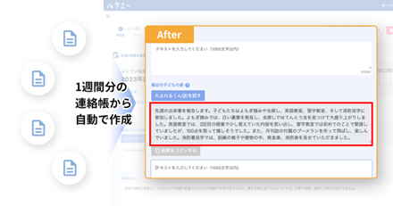 日々記録する連絡帳の中の「クラスのできごと」を1週間まとめて読み込み、週案のサマリを自動で作成します。