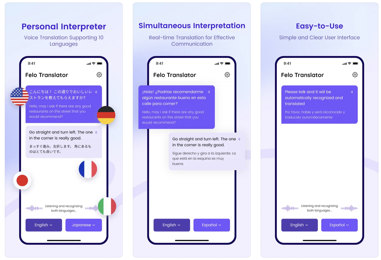 旅行や留学などのシーンでもFelo Translatorは重宝されます。例えば、海外旅行先で現地の言葉が理解できない場合でも、Felo Translatorが相手の発言を瞬時にテキスト化し、自分の言語に翻訳して再生します。そのため、観光地やレストランでのコミュニケーションや、現地の人々との交流が円滑に行えます。また、留学生や国際交流イベントでの言語の壁もFelo Translatorが解消し、異文化交流をより楽しく、より深くすることができます。Felo Translatorは、まるでプロの通訳がそばにいるかのようなリアルタイム同時通訳機能を提供し、さまざまなシーンで優れたパフォーマンスを発揮します。この革新的な製品を使って、あなたも言語の壁を超え、より広い世界とのつながりを築いてみませんか?ぜひFelo Translatorをお試しください。