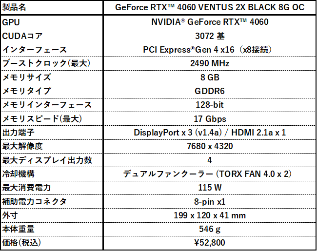 https://jp.msi.com/Graphics-Card/GeForce-RTX-4060-VENTUS-2X-BLACK-8G-OC