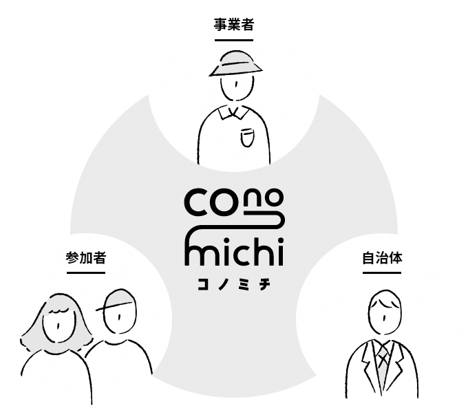 「co(「共に」を意味する接頭辞)」と「michi(未知・道)」を組み合わせた造語。訪れる人と地域が、未知なる道を一緒に歩んで元気になっていく、「この道」の先の未知なる価値を共に創り地域に新たな人や想いを運ぶ、そんな姿から【conomichi(コノミチ)】と名付けました。