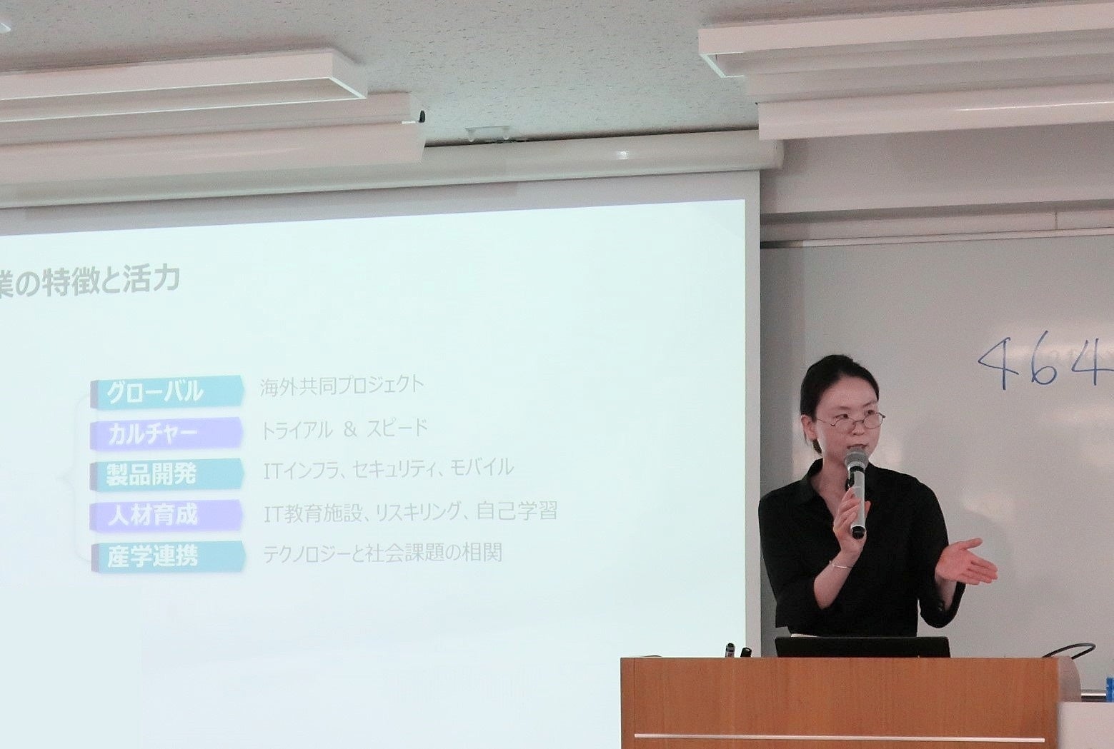 当日は、ペンタセキュリティの日本法人代表の陳が、「Management Information Systems」を学ぶ学生に向けて、「デジタル社会とサイバーセキュリティ」について講演しました。