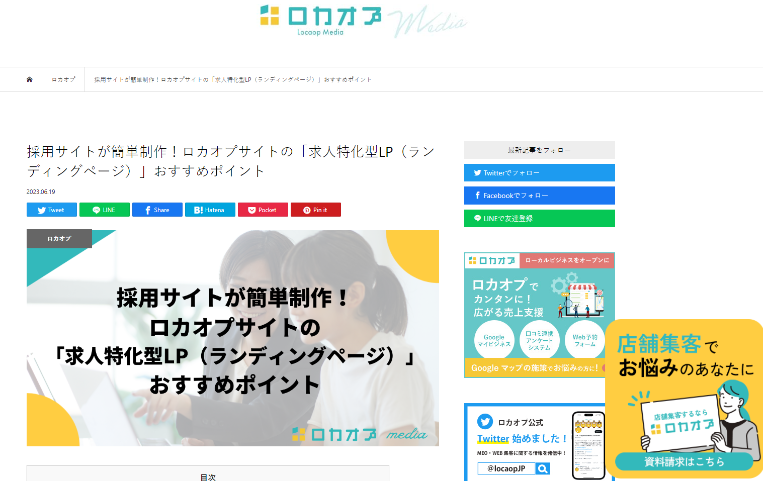 採用に特化したテンプレートをどのように活用すればよいか、採用応募を増やすために気を付けるべき効果的なライティングテクニックや画像の選定方法についてはロカオプの自社メディア、ロカオプメディア内にて詳しく ご紹介しています。
