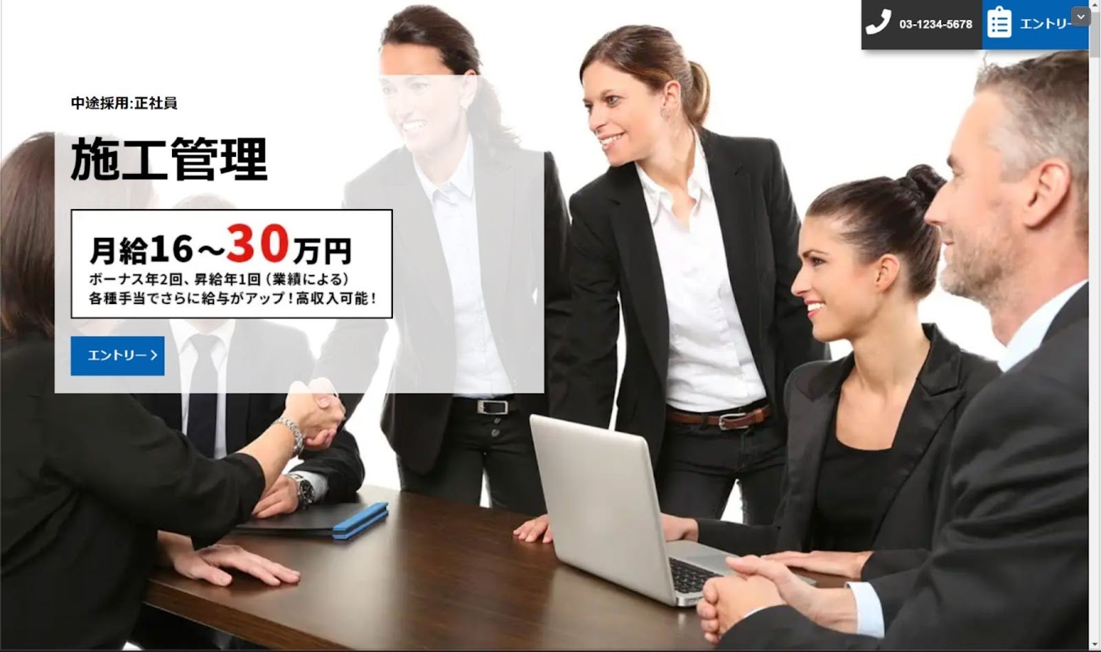 こちらは、弊社にて長年「採用サイト」で成果を残してきた制作チームが、そのノウハウをテンプレートとして詰め込めこんでいます。