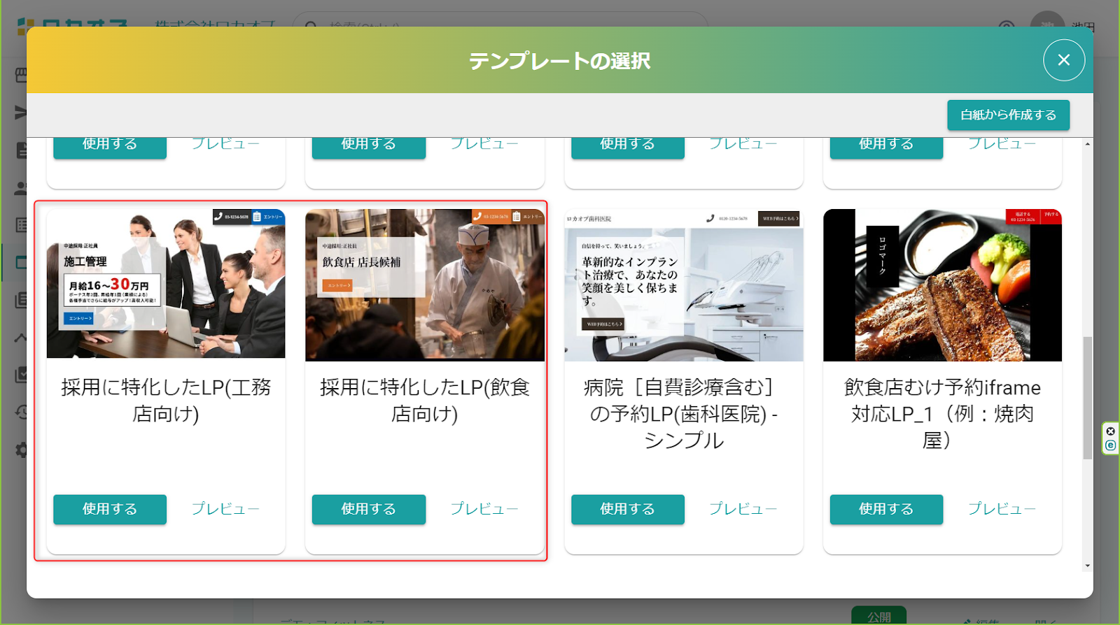 今回新しく追加したテンプレートは「採用に特化したLPテンプレート」です。