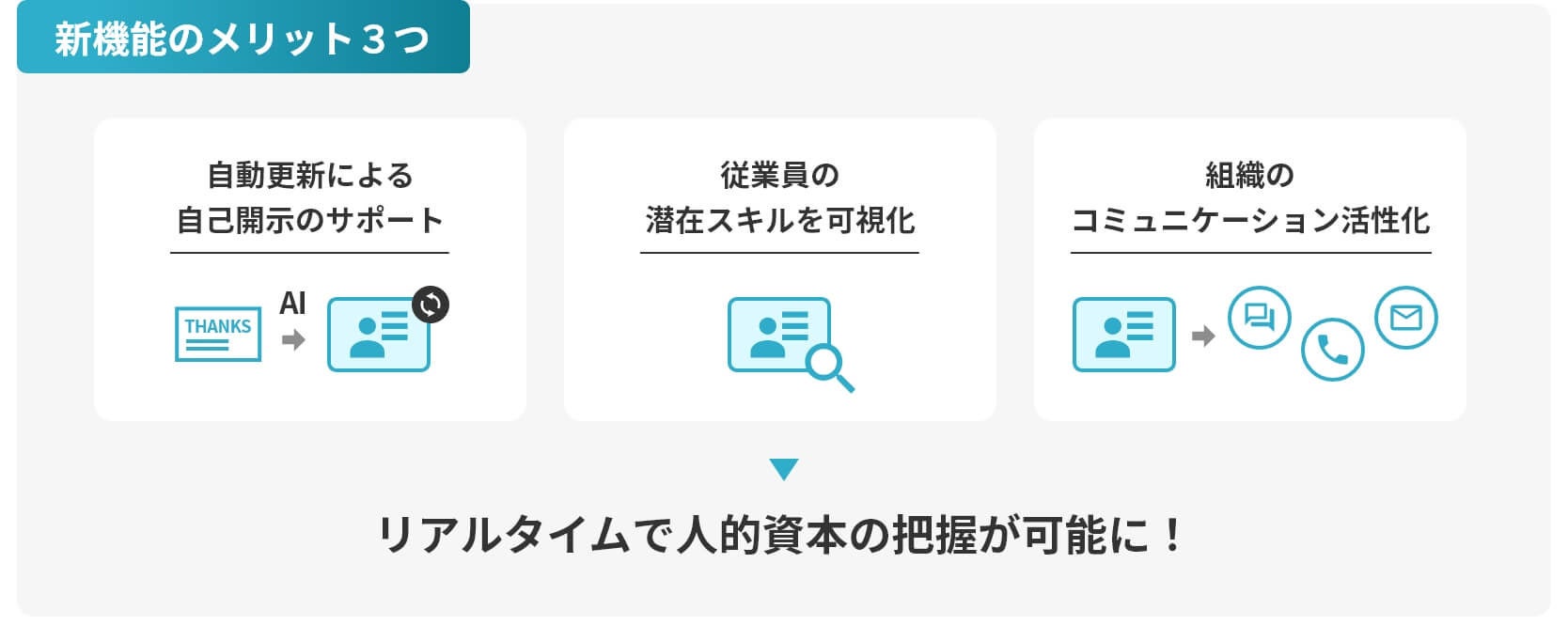 従業員の潜在スキルを可視化し、リアルタイムに人的資本の把握が可能となります。
