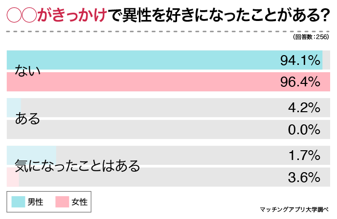 割合は少ないながらも、好きな人のおならや歯の青のりなどに対して好印象を抱く人が一定数いることがわかりましたが、逆に異性のおならや歯の青のりなどがきっかけで『相手を好きになってしまう』ということもあるのでしょうか。
