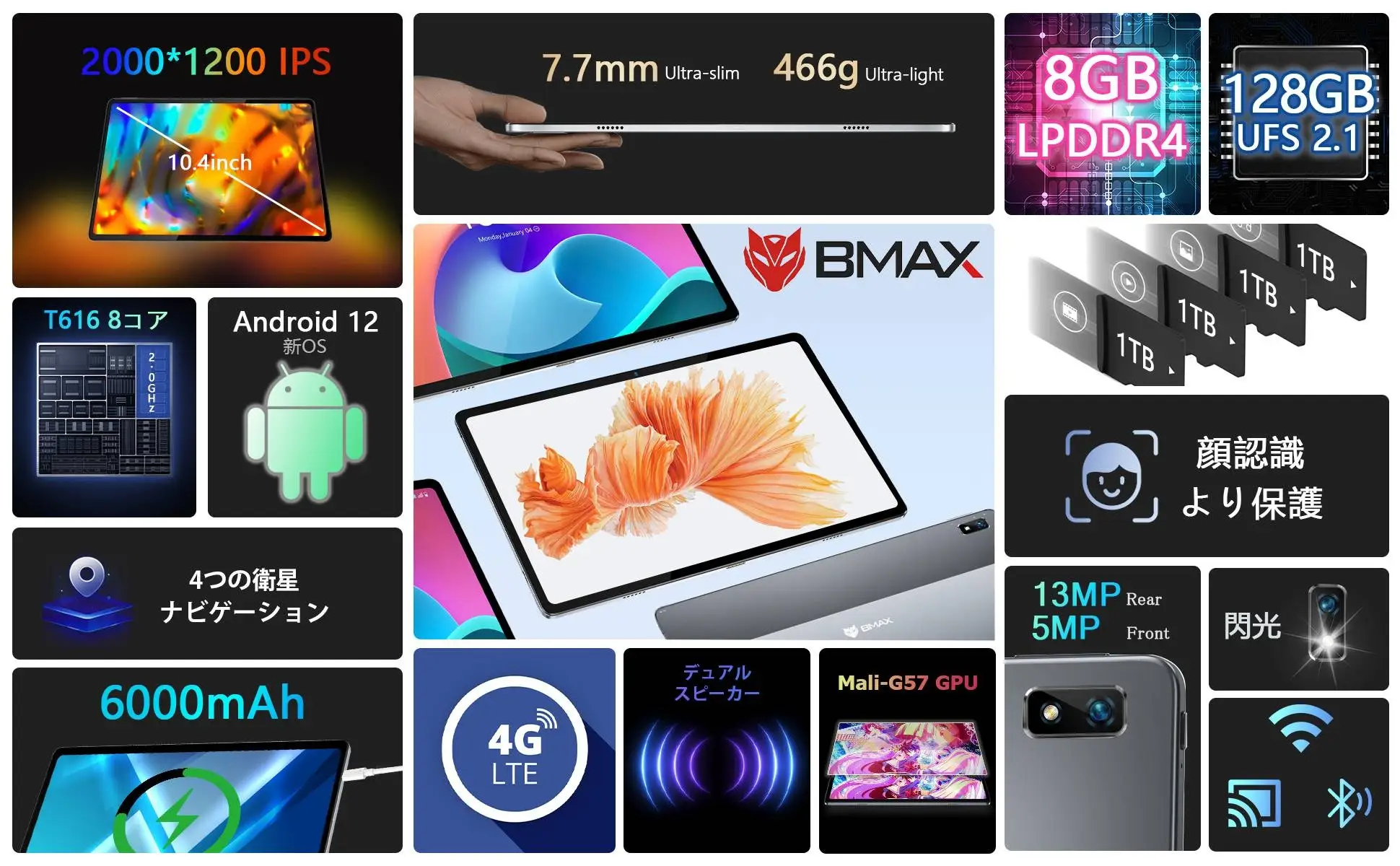 2K 大画面 8コアCPU搭載 8GB+128GB 高性能Android 12 タブレット !