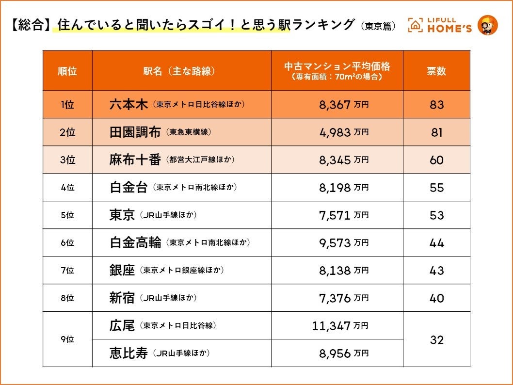 総合ランキング:「六本木」と「田園調布」がデッドヒート。「白金」ブランドも健在