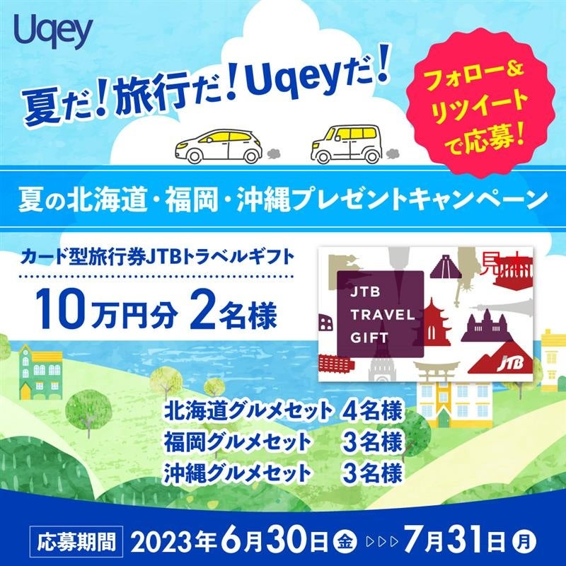 株式会社東海理化は、レンタカーマッチングアプリ「Uqey(ユーキー)」のTwitterを開設し、同時に「夏だ!旅行だ!Uqey だ! 夏の北海道・福岡・沖縄プレゼントキャンペーン」を開始します。今後もTwitterアカウントでは、「Uqey」の最新情報やキャンペーン情報などを発信していきます。