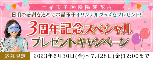 テレビ番組「ゴゴスマ」「ダウンタウンDX」出演で話題の占い師「水晶玉子」が月額公式サイトで、『3周年記念スペシャルプレゼントキャンペーン』を公開いたしました。