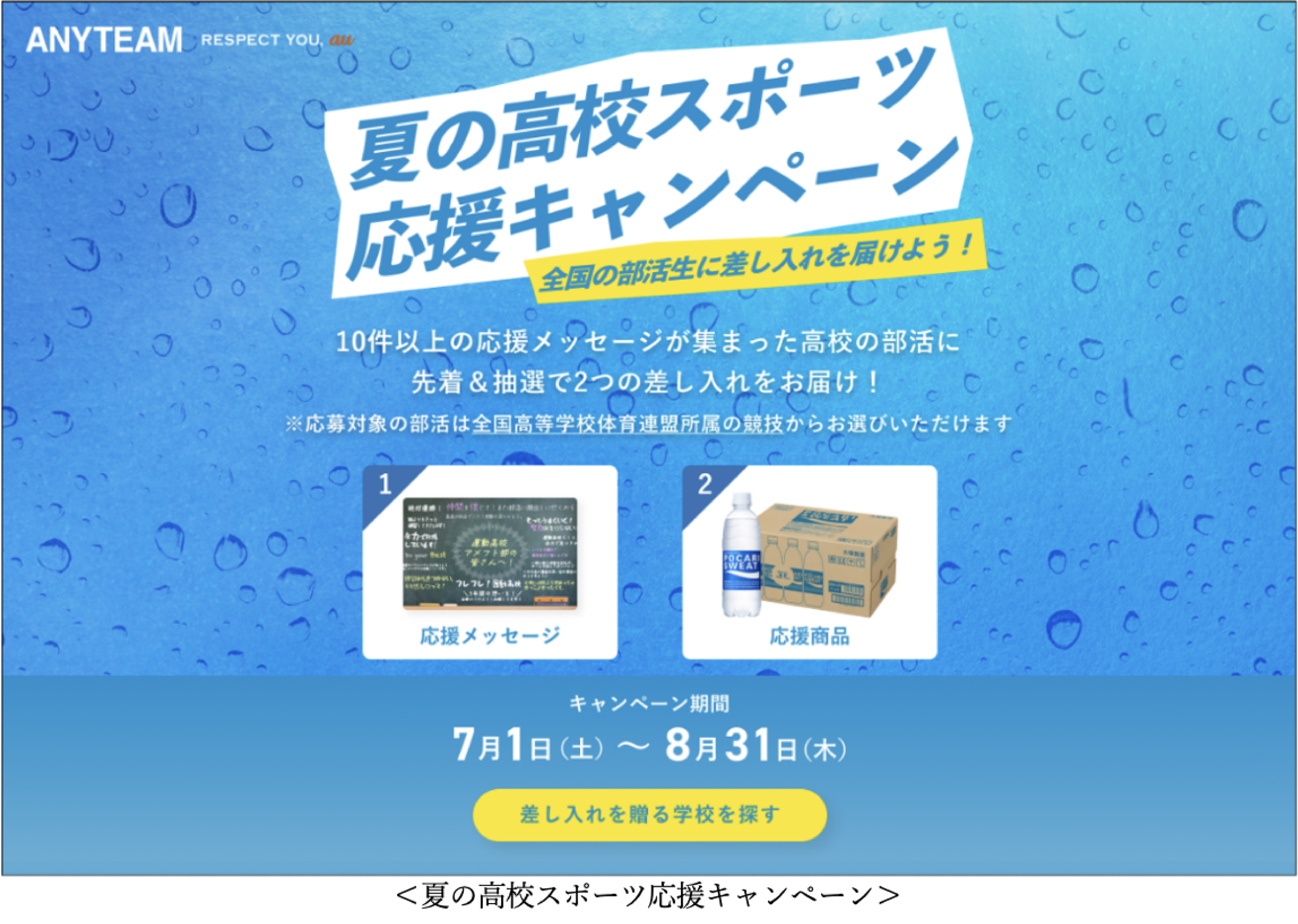 本キャンペーンを通じて、頑張る部活チームと学生にファンの応援を届けることで、夏の高校スポーツを盛り上げていきます。