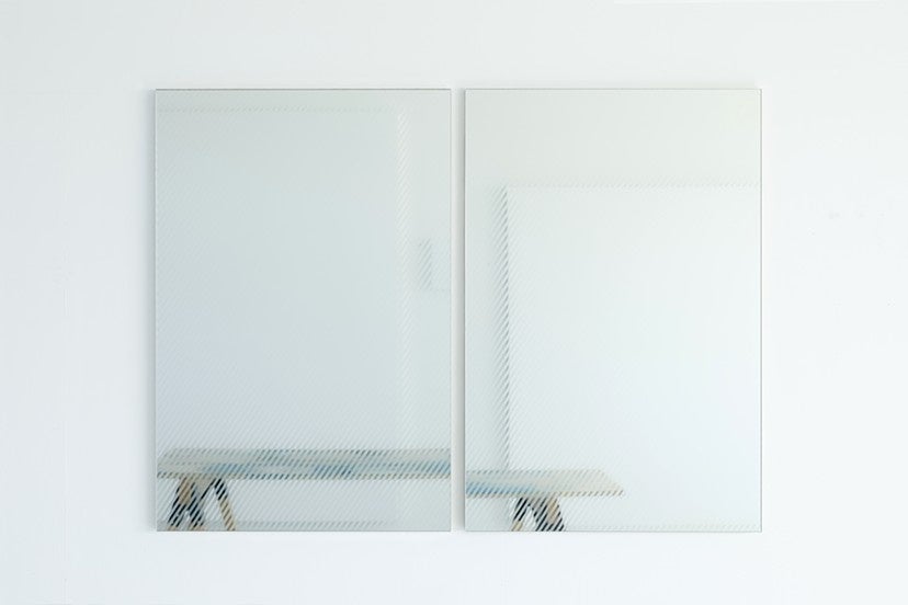 今井恵は、シルクスクリーンを刷る過程で身体を介することで発生するヒューマンエラー(ミスプリント)をアイデアの起点とし、「ものごとのとらえ方」や「視点の選択」をテーマとし制作しています。最近では、版を刷る行為を通じて予期せぬイメージを即興的に作り出し、鏡にストライプ模様をシルクスクリーンプリントした「mirror(stripe)」などのシリーズを制作しており、いずれの作品も人の視覚や経験から生じる認知の仕組みについてのアプローチがなされています。
