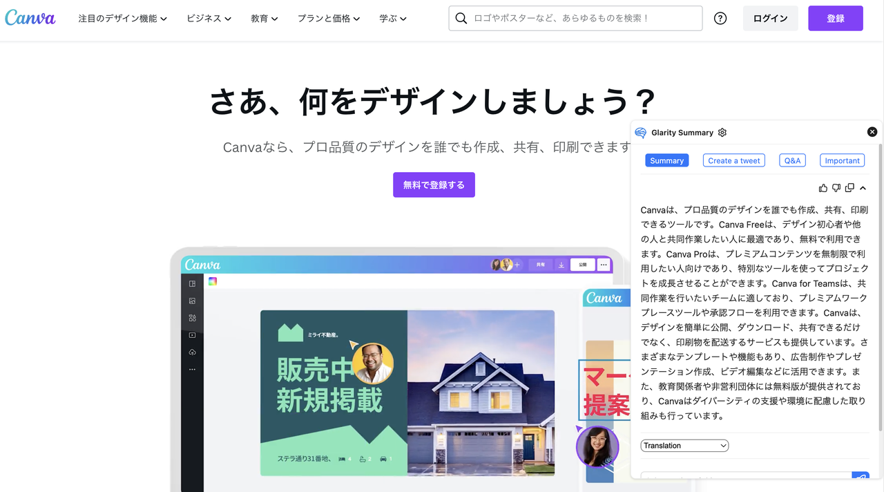 Canva Freeは、デザイン初心者や他の人と共同作業したい人に最適であり、無料で利用できます。Canva Proは、プレミアムコンテンツを無制限で利用したい人向けであり、特別なツールを使ってプロジェクトを成長させることができます。Canva for Teamsは、共同作業を行いたいチームに適しており、プレミアムワークプレースツールや承認フローを利用できます。Canvaは、デザインを簡単に公開、ダウンロード、共有できるだけでなく、印刷物を配送するサービスも提供しています。さまざまなテンプレートや機能もあり、広告制作やプレゼンテーション作成、ビデオ編集などに活用できます。また、教育関係者や非営利団体には無料版が提供されており、Canvaはダイバーシティの支援や環境に配慮した取り組みも行っています。