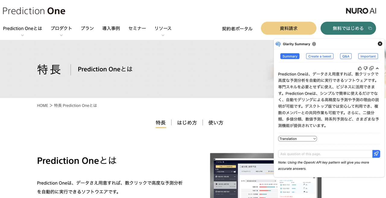 Prediction Oneは、データさえ用意すれば、数クリックで高度な予測分析を自動的に実行できるソフトウェアです。専門スキルを必要とせずに使え、ビジネスに活用できます。Prediction Oneは、シンプルで簡単に使えるだけでなく、自動モデリングによる高精度な予測や予測の理由の説明が可能です。デスクトップ版では安心して利用でき、複数のメンバーとの共同作業も可能です。さらに、二値分類、多値分類、数値予測、時系列予測など、さまざまな予測機能が提供されています。