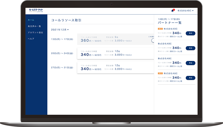 将来的には受注履歴や活動履歴情報を用いた最適なパートナーの自動でのレコメンデーションや架電リソース以外のB2Bサービス資源の売買を可能にする機能の開発を予定しております。