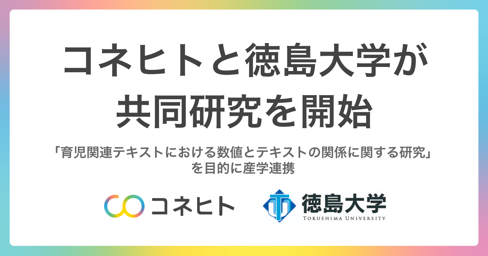 コネヒトは徳島大学大学院 社会産業理工学研究部 講師 吉田稔氏と「育児関連テキストにおける数値とテキストの関係に関する研究」を目的に共同研究を行います。