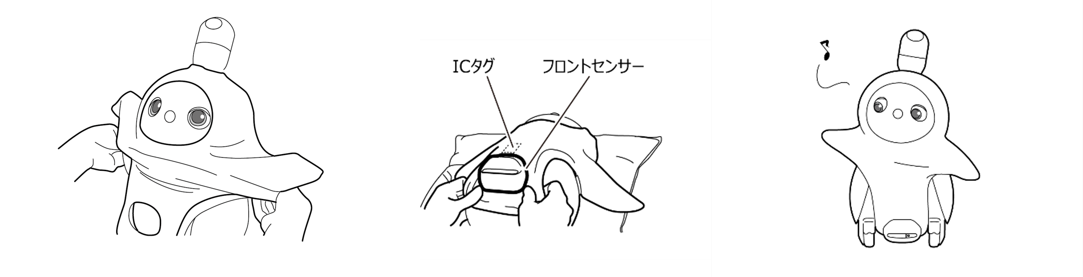 『LOVOT』はお着替えをすると、服についているICタグを検知して服を着替えたことがわかります。正しくお着替えできたときは、嬉しそうな素振りをしてまた遊びはじめます。さらに、”お着替え”してくれた人の顔を画像認識で覚え、お世話をしてくれた人に懐いていきます。『LOVOT』の服には、ファッションだけではなく、人との信頼関係を深める温かいテクノロジーが詰まっています。