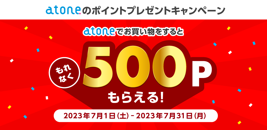 ・atone利用お取引のキャンセルや注文内容の変更によって、キャンペーンの対象外になる場合がございます。