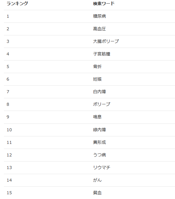 こちらの病名ランキングにつきまして、保険会社ユーザー様には毎月上位1,500個までお渡しさせて頂いておりますが、さらに精度を上げたデータにすべく改善を重ねております。